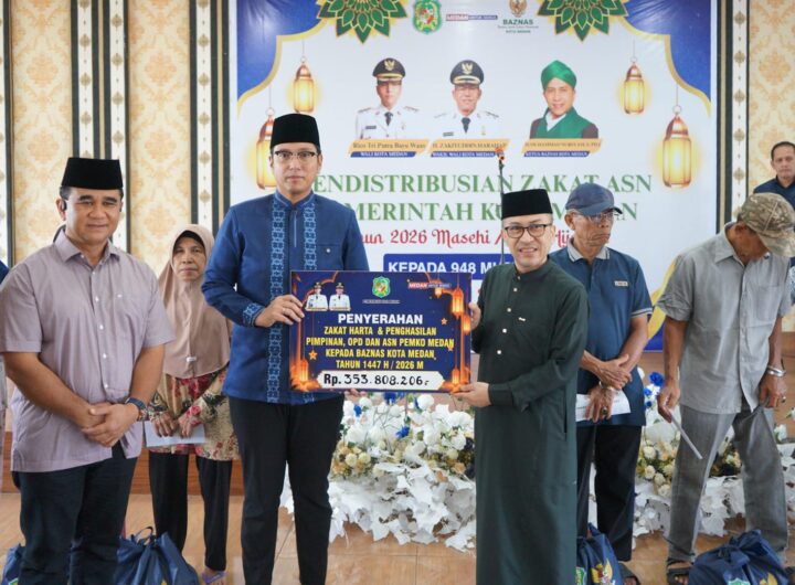 koranmonitor – MEDAN | Menjelang hari raya Idulfitri 1447 H, Wali Kota Medan, Rico Tri Putra Bayu Waas menyalurkan zakat Aparatur Sipil Negara (ASN) di lingkungan Pemko Medan kepada 948 mustahik yang tersebar di 21 Kecamatan sekota Medan. Zakat dalam bentuk paket sembako dan uang tunai itu diserahkan secara simbolis oleh Rico Waas di Kantor Lurah Binjai, Kec, Medan...