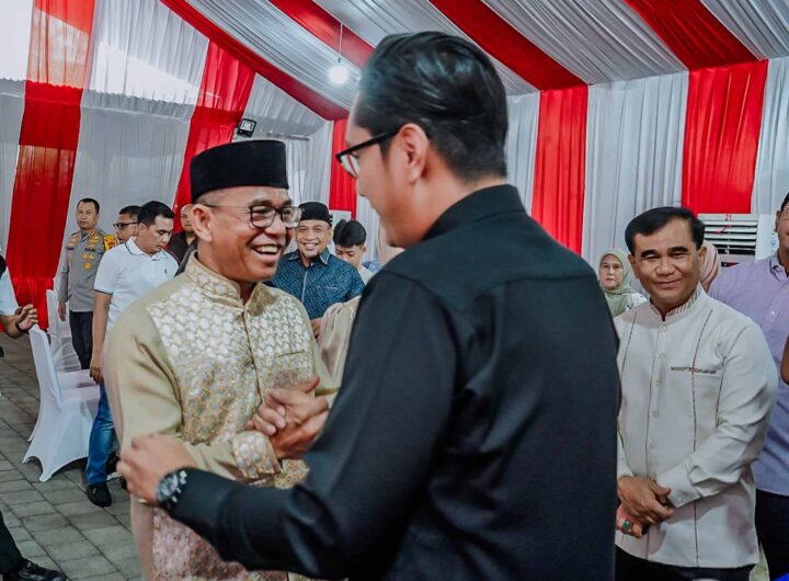 koranmonitor – MEDAN | Suasana hangat dan penuh keakraban mewarnai kegiatan Halalbihalal Idul Fitri 1447 Hijriah yang digelar di rumah dinas Wakil Wali Kota Medan H. Zakiyuddin Harahap, Minggu (22/3/2026). Sejak pukul 09.00 WIB, tamu undangan mulai berdatangan untuk bersilaturahmi dalam momentum Hari Raya Idul Fitri. Kegiatan ini berlangsung hingga sore hari dengan dihadiri berbagai unsur penting di Kota Medan. Tampak...