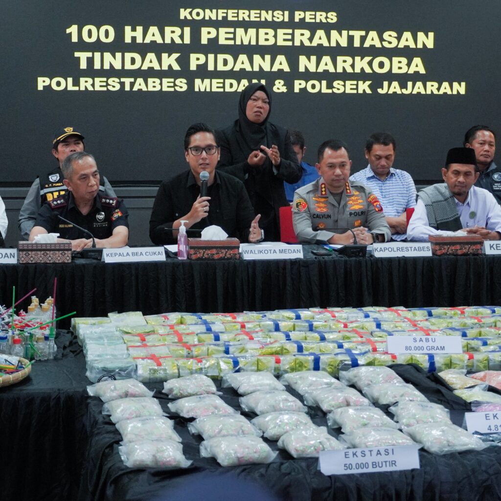 “Selama 100 hari, ada 526 kasus tindak pidana narkotika yang berhasil diungkap dengan 718 tersangka,” ujar Jean Calvijn Simanjuntak saat konferensi pers di Mapolrestabes Medan, Jalan HM Said, Sabtu (21/2/2026).