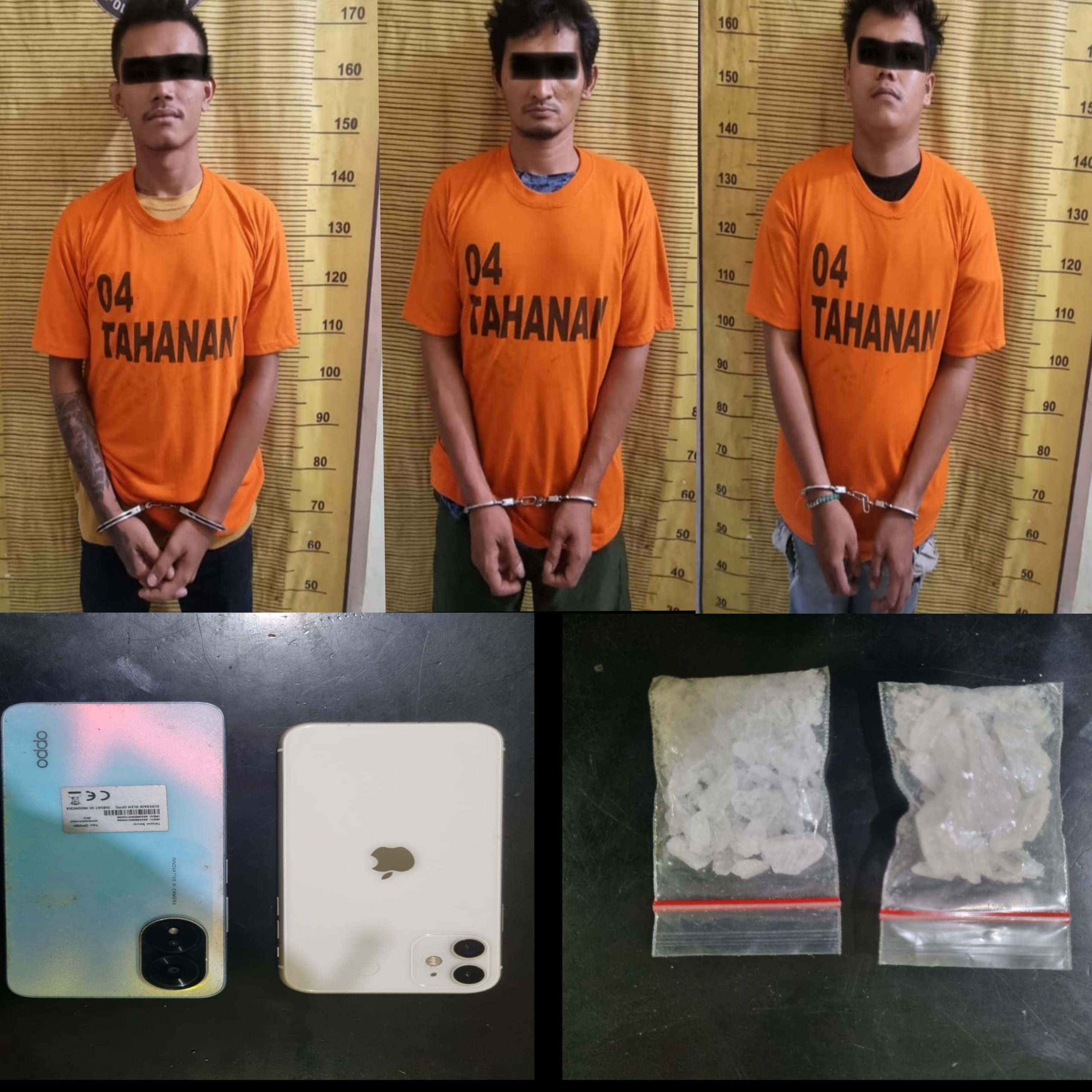 “Menindaklanjuti laporan warga, tim yang dipimpin Ipda Eddy Supratman, SH bersama anggota langsung menuju ke lokasi sesuai informasi titik. Sekitar pukul 17.30 WIB, petugas menemukan tiga pria berdiri di pinggir jalan. Salah seorang tampak memegang bungkus rokok merek Sampoerna, sementara dua lainnya sibuk dengan ponsel mereka,” jelas AKP Junaidi.
