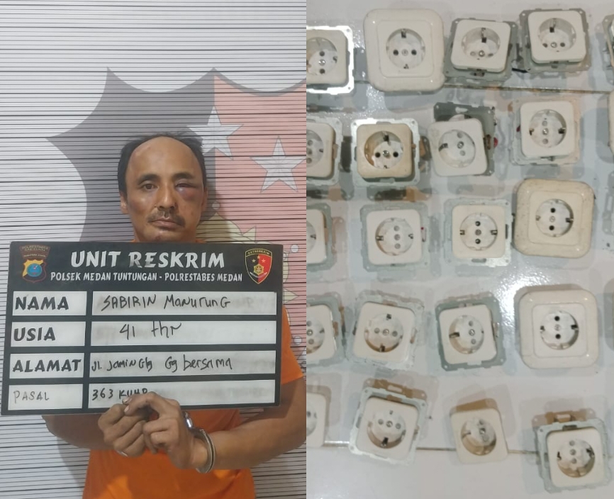 koranmonitor – MEDAN | Polsek Medan Tuntungan meringkus Sabirin (41), warga Jalan Jamin Ginting, Padang Bulan Medan, seorang tersangka pencurian kabel di bekas rumah sakit Ananda Putri.