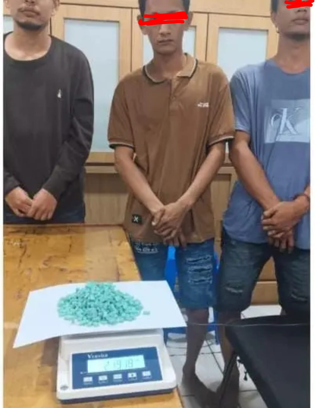 Ratusan butir pil setan tersebut disita polisi dari tiga orang tersangka. Mereka adalah, MAA (32), FJS (28), dan ABA (27). Ketiganya ditangkap dengan barang bukti pil ekstasi sebanyak 500 butir.