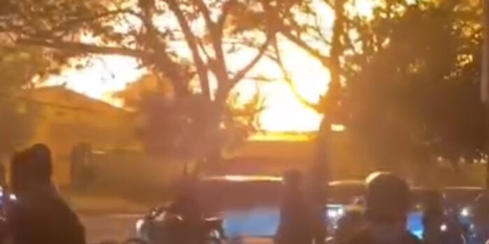 Peristiwa tersebut terjadi sekitar pukul 22.10 WIB. Api dengan cepat membesar dan membumbung tinggi ke udara disertai kepulan asap hitam pekat yang terlihat dari jarak jauh.