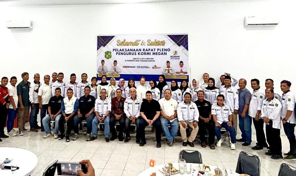 koranmonitor – MEDAN | Untuk penguatan roda organisasi serta penegasan visi dan misi, Komite Olahraga Masyarakat Indonesia (KORMI) Kota Medan menggelar rapat pleno pengurus yang dilaksanakan di aula Rakhan Kopi, Jalan Gagak Hitam, Medan Sunggal, Jumat 27 Februari 2026.