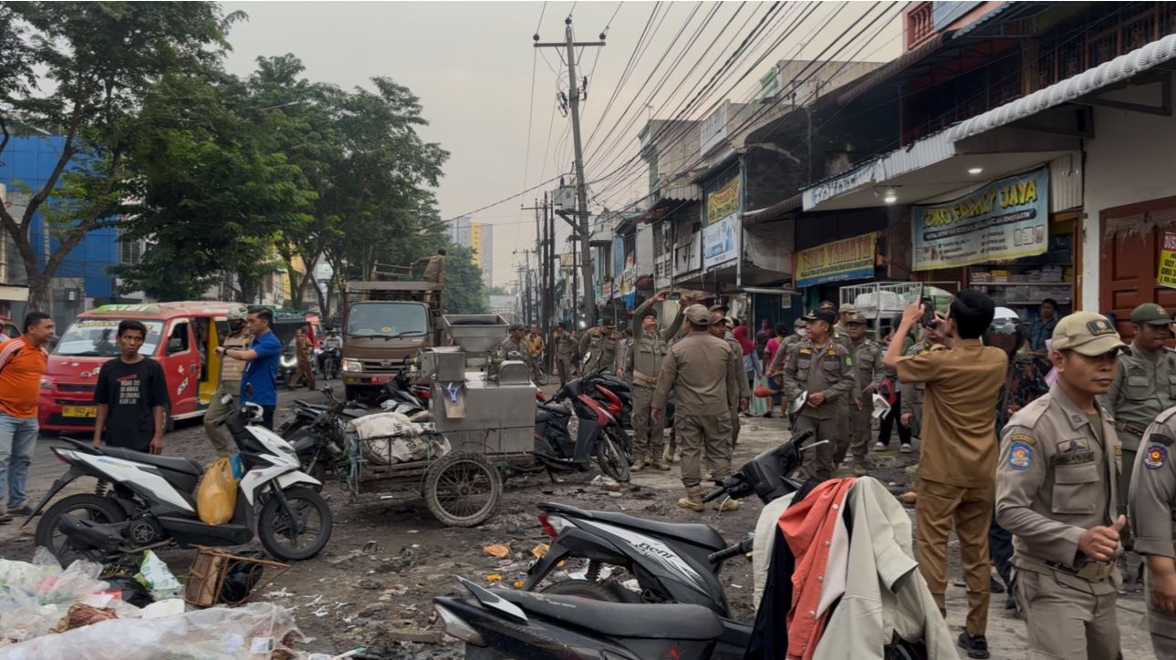 Satpol PP Kota Medan melakukan penertiban di sekitaran Pasar Sukaramai, Kamis (30/10/2025). (Foto. KMC)