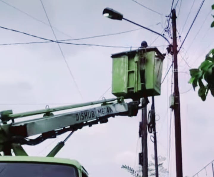 Wujudkan Medan Terang Benderang, Pemasangan dan Perawatan Dilakukan Dishub di 95.369 Titik LPJU. (Foto. KMC)