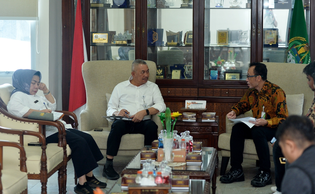 Pj Sekdaprov Sumut Sulaiman Harahap menerima kunjungan Pimpinan Kantor Wilayah BPJS Ketenagakerjaan Sumbagut (Sumut-Aceh), Rabu (26/11/2025). (Foto. Diskominfo Provsu).