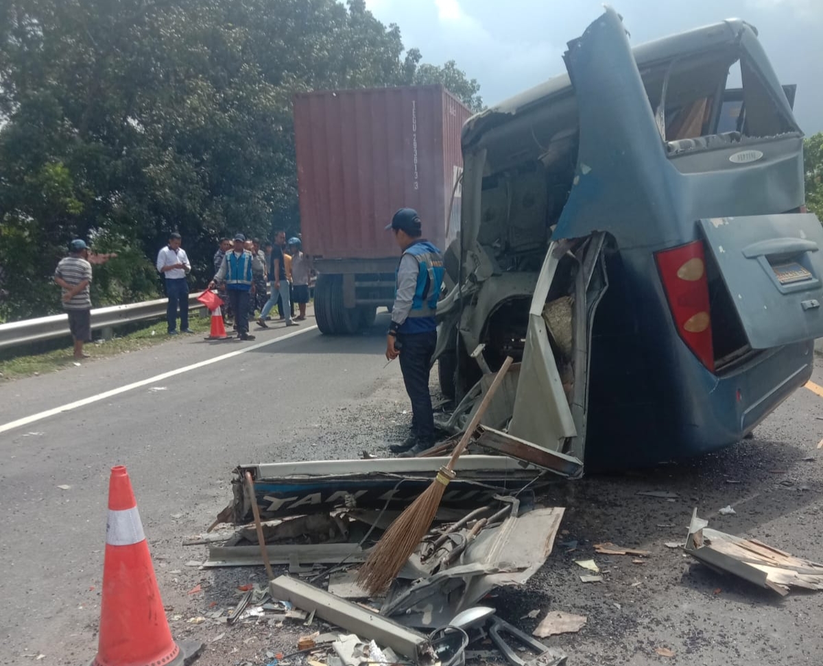 koranmonitor - MEDAN | Satu unit bus milik TNI mengalami kecelakaan di ruas Tol Belawan - Medan - Tanjungmorawa (Belmera),…