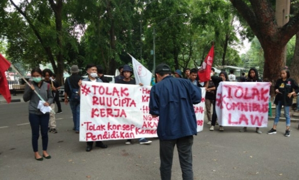 Dalam aksi itu, pengunjuk rasa menyampaikan tuntutan terkait Omnibus Law, yakni: